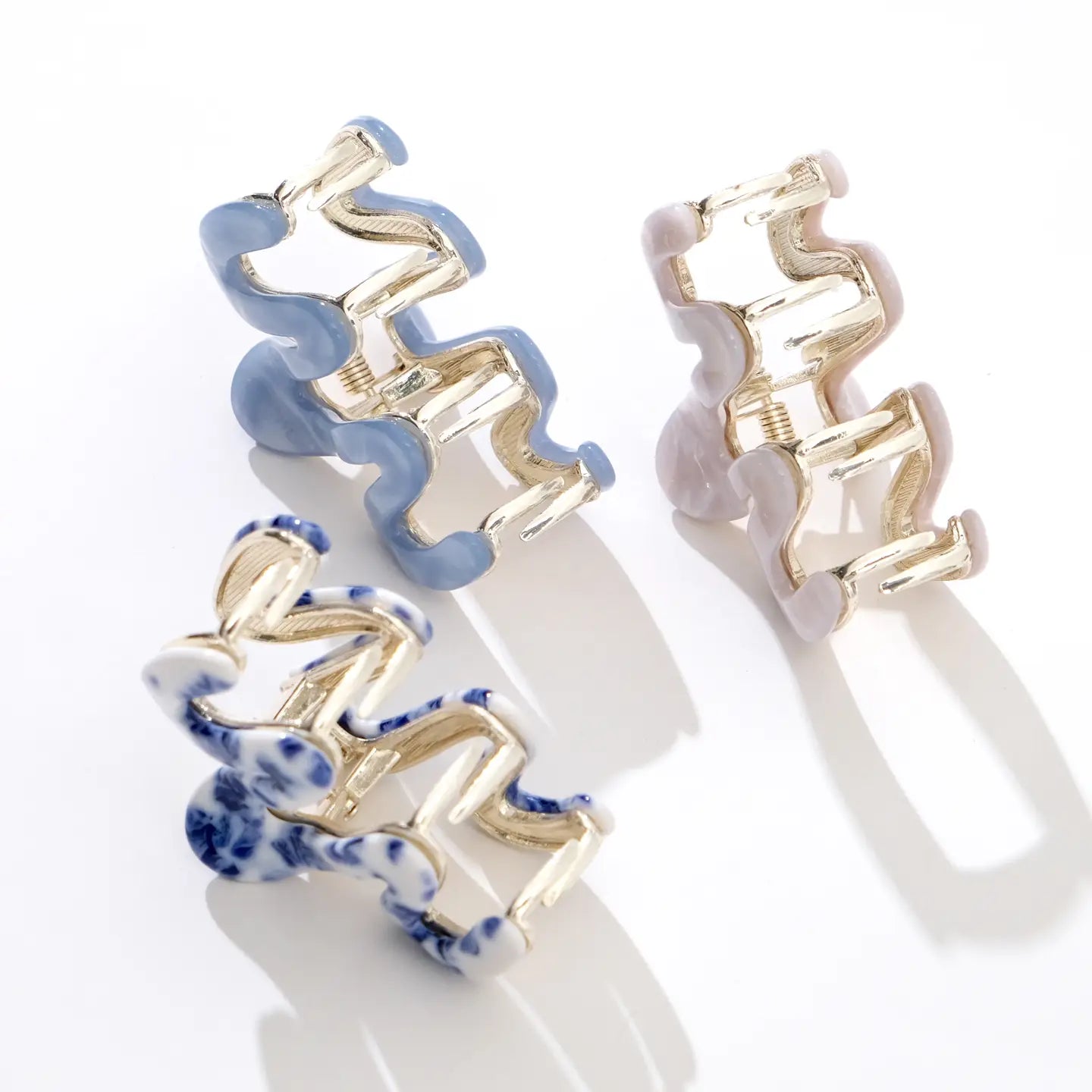 Add a playful ocean-inspired touch to everyday styling with the Willow Mini Coastal Squiggle Metal Claw Clip from Adorro. Designed in Chicago with small and medium hair lengths in mind, this 3-inch claw clip features a wavy squiggle pattern and a layered cellulose acetate top over a durable metal base.