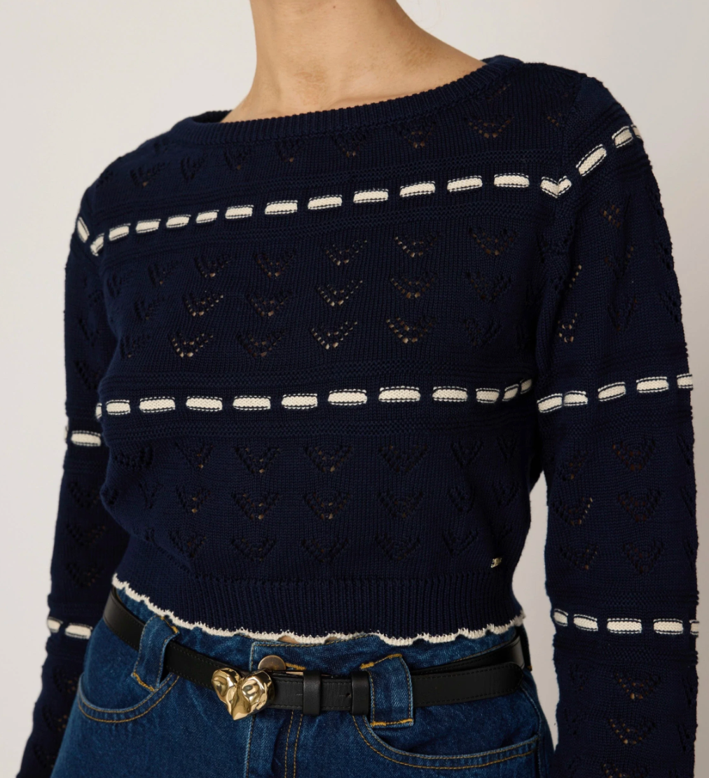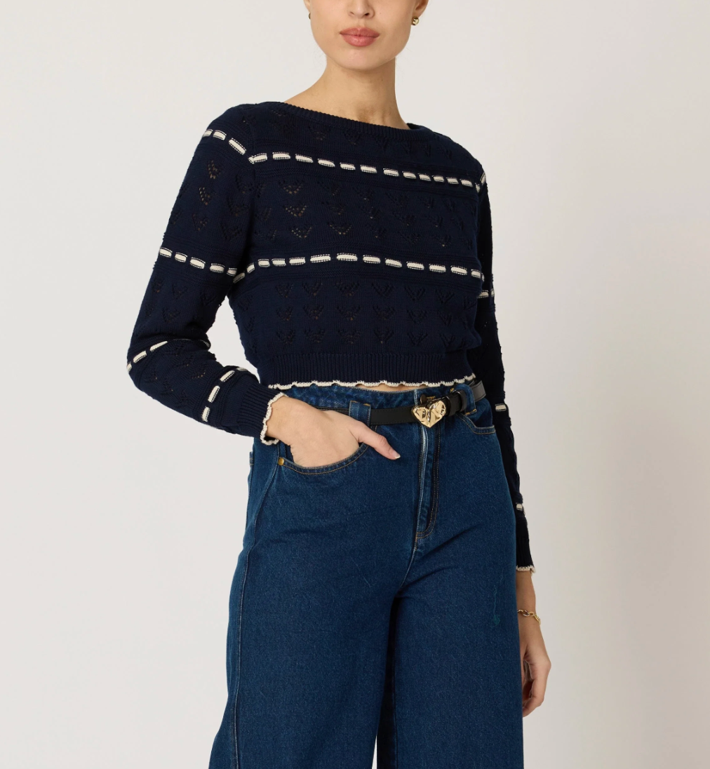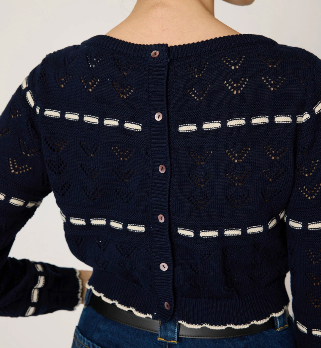 The Cleobella Estrella Sweater is a lightweight, organic cotton knit that combines timeless style with versatility. Crafted from sustainable yarn, this piece features a delicate pointelle pattern and subtle contrast weave detailing. Designed with button closures at the back, it offers the option to be worn front-to-back for a fresh, effortless look.