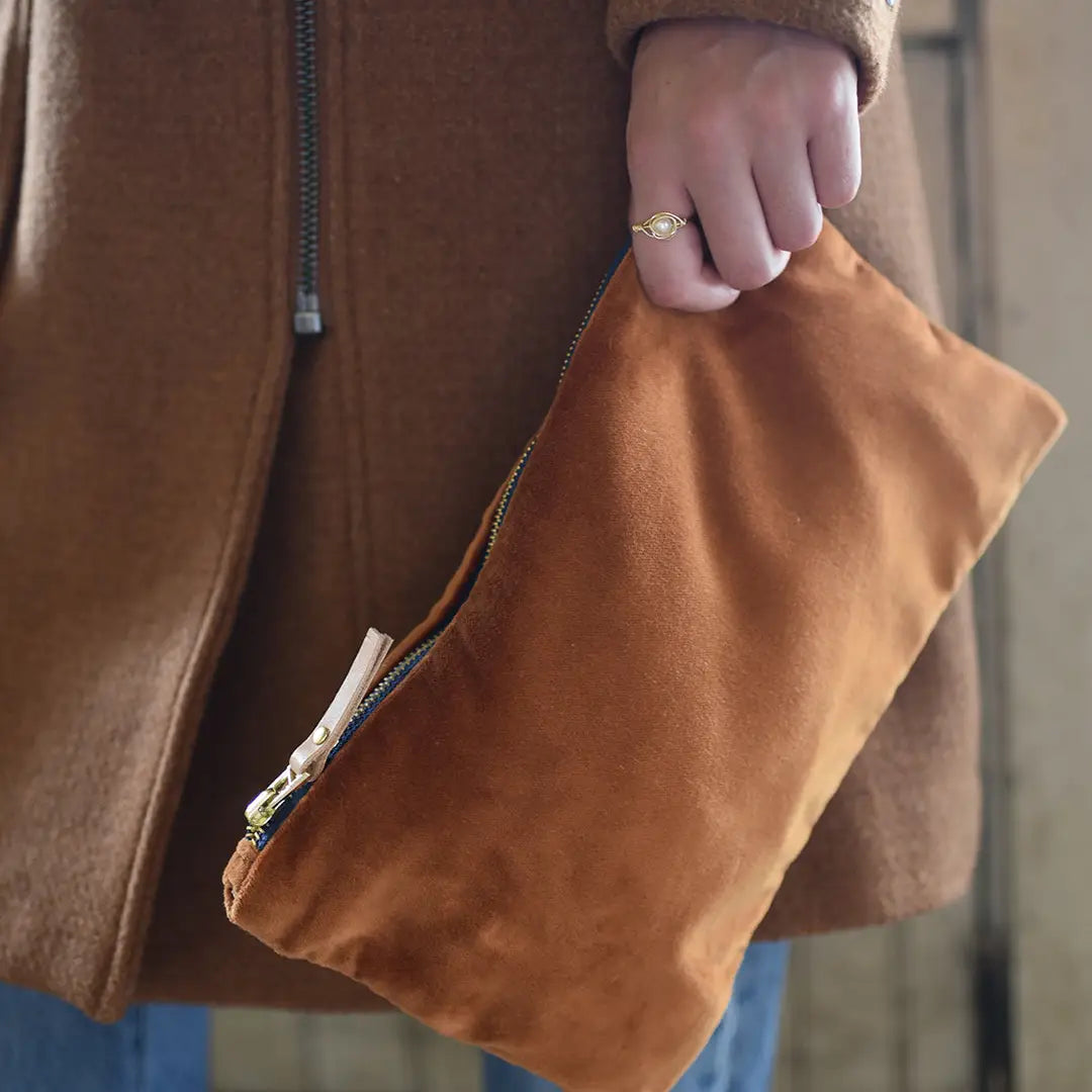 Add a touch of luxe to any outfit with this Velvet Clutch in Navy, designed to be both chic and playful. The soft cotton velvet exterior feels sumptuous to the touch, while the hand-printed lining lining adds a whimsical surprise every time you open it.