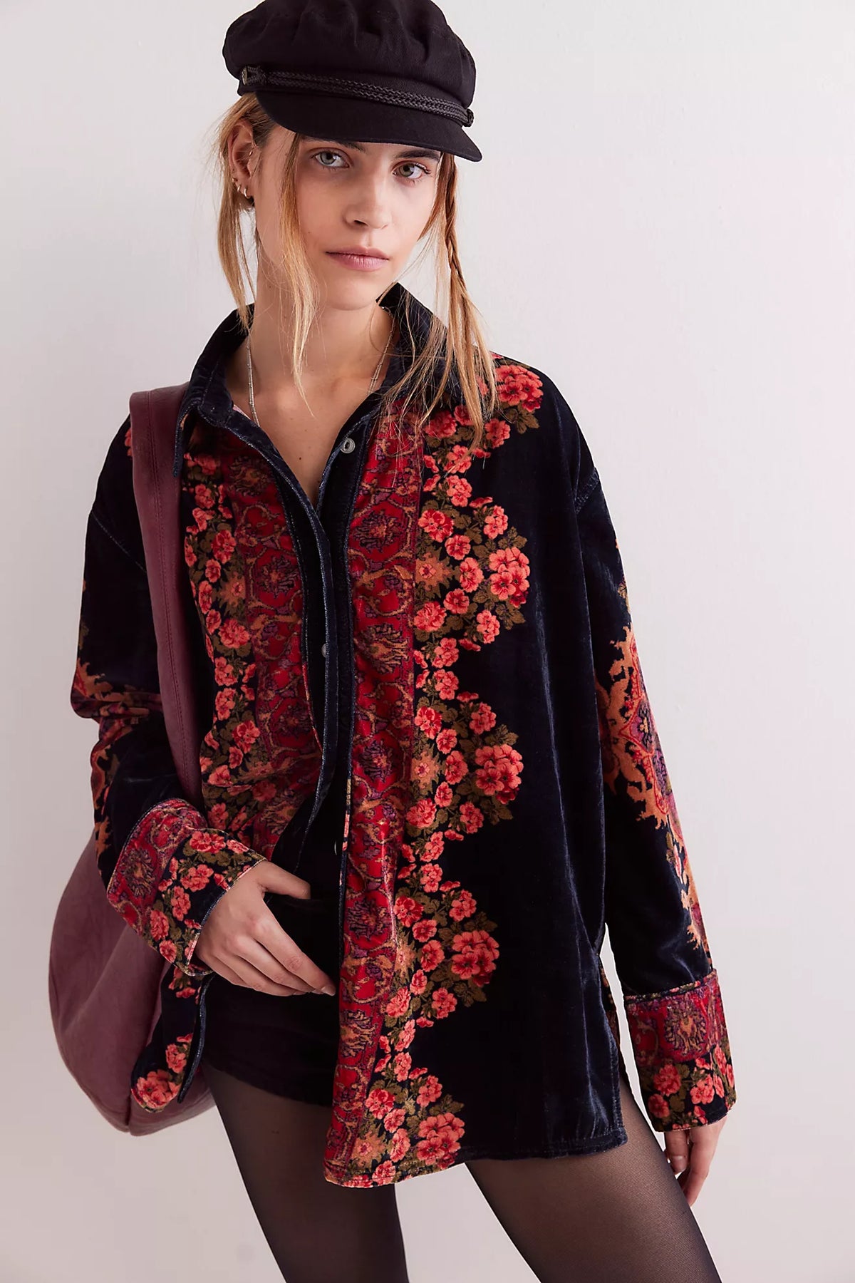 The Free People We The Free One Night Velvet Top in Night Owl Combo s a luxe yet laid-back piece designed to elevate your everyday wardrobe. Crafted in plush velvet, it offers a soft hand feel with a touch of structure, giving it that perfect balance between comfort and sophistication.