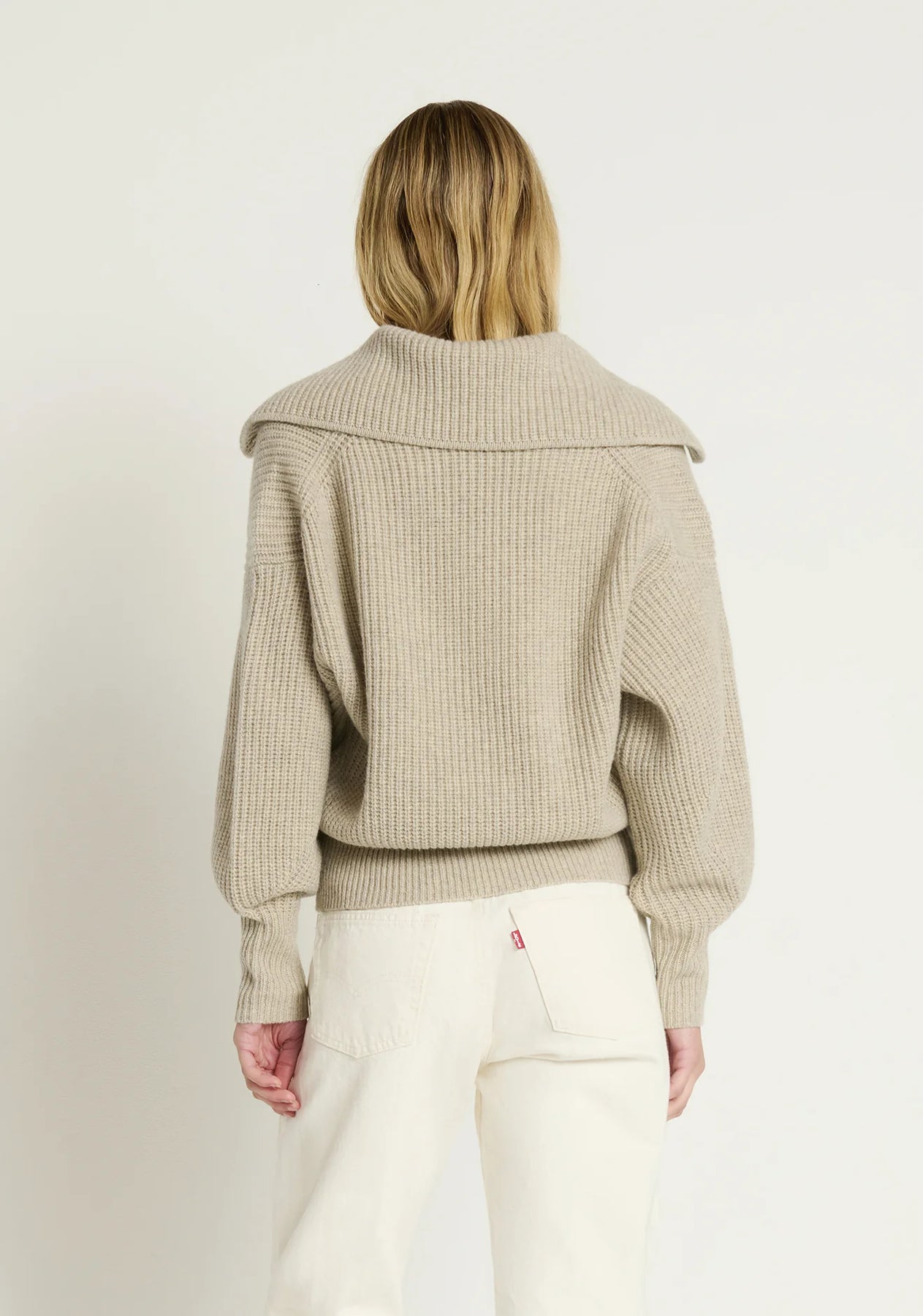 The Nation LTD Ashton Collared Pullover in Moonbeam Heather is a luxurious and versatile wardrobe staple that effortlessly combines sophistication with comfort. This pullover is made from 100% merino wool, offering a soft and breathable feel perfect for layering or wearing on its own.