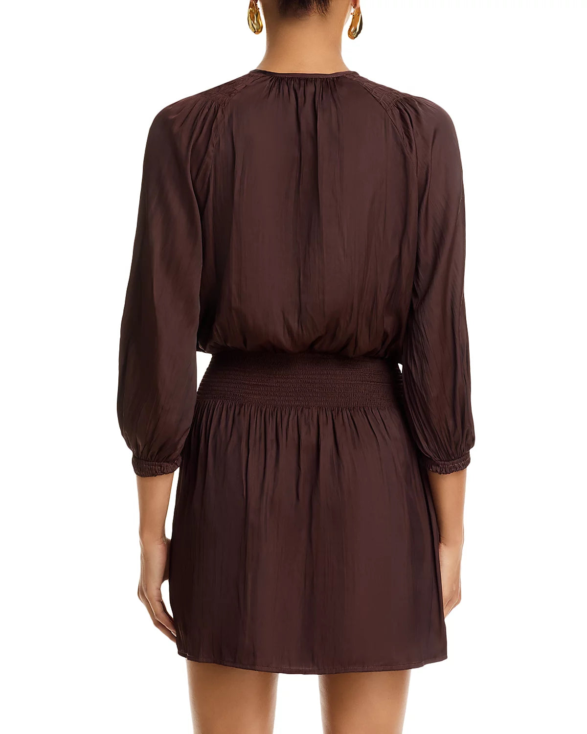 The Rails Kari Dress in Espresso is a charming and versatile mini dress that effortlessly combines bohemian flair with modern elegance. The Kari Dress features a flattering fit-and-flare silhouette with a tiered skirt, smocked detailing at the shoulders and waist, and a front tie closure for an adjustable neckline.