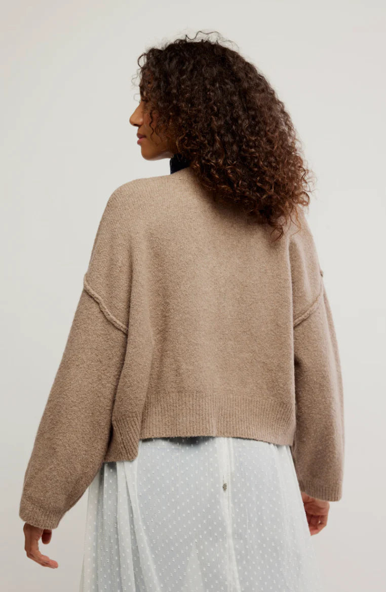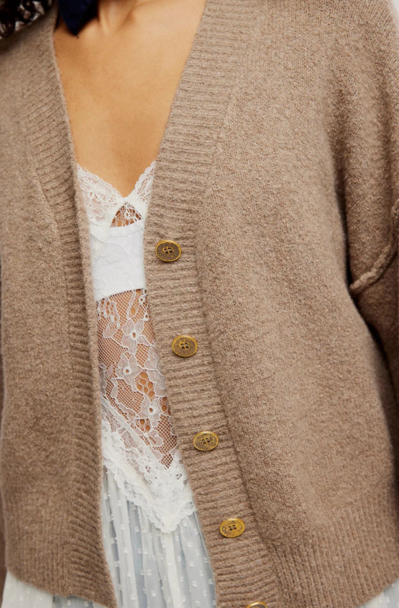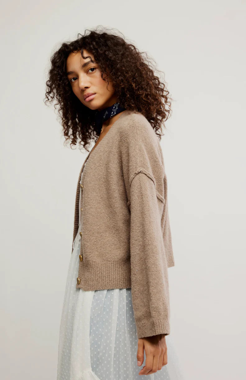 The Free People Cool Of The Night Cardi in Mocha Melange delivers cozy, laid-back style with a modern edge. Made from a soft, breathable cotton blend, this slouchy V-neck cardigan features dropped shoulders and subtle ribbed trims for a lived-in, effortlessly chic look. The roomy silhouette and lightweight knit make it the perfect layering piece for transitional weather or cool summer nights.