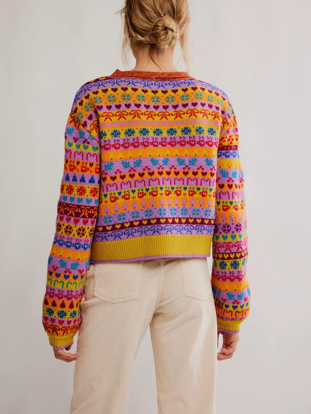 The Free People Favorite Things Sweater in Bright Confetti Combo hits that sweet spot of playful and polished. The bright stripe design and cropped finish keep it current, while its wool-rich knit ensures comfort and longevity.